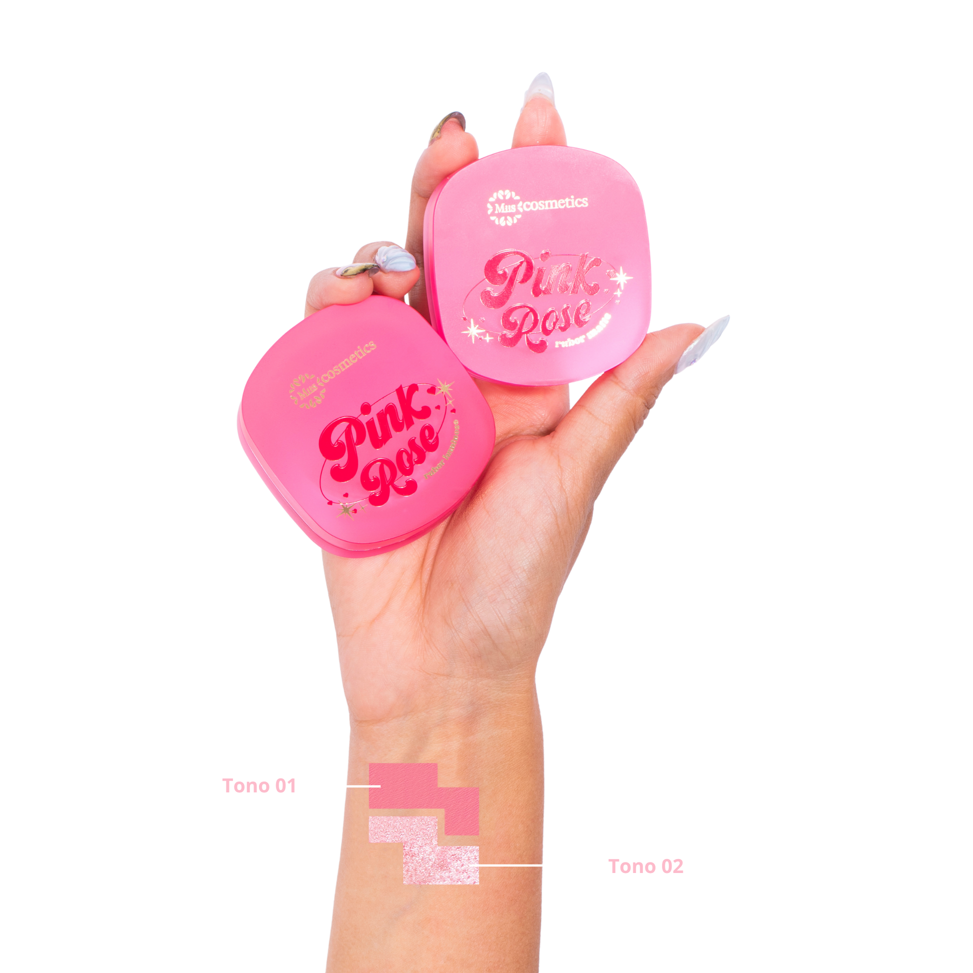 Incluye un rubor luminoso, con un brillo espectacular ideal para resaltar mejillas, ojos, labios o escote, y un rubor matte en tono rosa, perfecto para lograr un acabado natural y sofisticado en cualquier look.